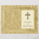 Ein elegantes Cover, das ein Programm oder eine Speisekarte begleitet, mit einem Christlichen Kreuz, einer dünnen Goldgrenze und zerkleinertem Vintagem Papier.
