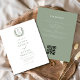 Mit einer formalen blumengeschmückten Einladung zum Wappen mit einem QR-Code für den einfachen Zugang zu Veranstaltungsdetails schaffen Sie einen zeitlosen Eindruck. Diese elegante Einladung verbindet klassische Blumenmotive mit einem personalisierten Wappen und verleiht Ihrem Hochzeitsthema eine raffinierte Touch. Der QR-Code vereinfacht RSVPs, Anweisungen und andere wichtige Informationen und bietet Komfort in einem modernen Format. Ideal für feierliche Hochzeiten, verbindet diese Einladung Tradition und Technik, um einen schönen und organisierten Tag zu garantieren.