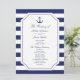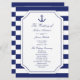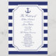 Parfait pour votre mariage à thème nautique, cette carte programme dispose d'un ancre bleu marine classique avec une corde et un arrière - plan rayé bleu et blanc. Avant de la carte comprend les noms de la mariée et du marié, le lieu de la cérémonie, et une liste de la cérémonie mariage, Le dos de la carte a les noms des parents, officiant et la fête de la mariée qui peuvent tous être personnalisés.
