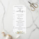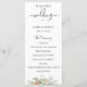Élégante flore aquarelle botanique blanche, verte et orange pêche, feuillage et fleurs, programme de mariage. Le programme présente une calligraphie mignonne "mariage" avec plusieurs lignes pour des listes de texte personnalisées pour l'ordre des événements de la cérémonie, le cortège de mariage et le mot de remerciement.