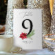 Le design des numéros de table botanique des fêtes à thème comporte des botaniques aquarelles peintes à la main et un joli poinsettia rouge. Le design simple et moderne est placé sur un arrière - plan blanc et immaculé et accentué de pointes d'or assorties. #Noël #Fêtes #FêtesVacances