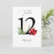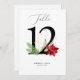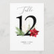 Le design des numéros de table botanique des fêtes à thème comporte des botaniques aquarelles peintes à la main et un joli poinsettia rouge. Le design simple et moderne est placé sur un arrière - plan blanc et immaculé et accentué de pointes d'or assorties. #Noël #Fêtes #FêtesVacances