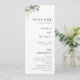 Informez vos invités sur le programme de mariage avec cette carte programme élégante, avec l'aquarelle de fleurs d'eucalyptus et votre texte personnalisé. Ajoutez facilement vos propres détails en cliquant sur l'option "personnaliser".