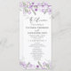 Cet élégant programme de mariage de notre collection Lavender Pressed Floral présente des fleurs d'aquarelle violette avec des vignes vertes délicates, associées à une police de caractères de script moderne. Parfait pour toute saison. Pour effectuer des modifications anticipées, sélectionnez Personnaliser -> Modifier à l'aide de l'outil de conception.