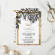 Elégante, chic et moderne plage tropicale imitation contour d'or imprimé et feuilles de fronde de palmier noir sur blanc avec fausse impression typographie de paillettes d'or, programmes de mariage. Ce design classique et sophistiqué est parfait pour le couple marié branché et élégant. Personnalisez avec votre propre message sur l'avant ainsi qu'avec un premier monogramme customisé sur l'arrière. Toute la conception d'impression photo.