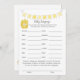Un jeu amusant pour le baby shower est le jeu de langue Baby. Ce jeu comporte une bannière jaune en haut et un tonneau de miel. Au verso, un ours en peluche s'appuie sur un tonneau de miel en regardant une abeille au miel avec des modèles.