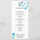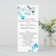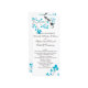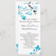Ce programme de mariage comprend deux oiseaux aux accents bleus et une branche d'arbre aux feuilles bleus assortis.