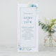 Ce programme de mariage élégant présente une disposition propre et moderne avec de délicats accents botaniques bleus. Des fleurs douces à l'aquarelle et des plantes vertes encadrent le dessus et le bas de la carte, créant une atmosphère fraîche et naturelle. Le design minimaliste utilise une police serif raffinée dans un bleu doux, rehaussant l'aspect contemporain et sophistiqué. Parfait pour les couples à la recherche d'un programme de mariage élégant mais sobre, cette carte recto verso affiche l'ordre de cérémonie et les détails de la fête de mariage dans un format facile à lire. La palette de couleurs bleu et vert cool, associée à de subtiles illustrations florales, apporte un sentiment de calme et d'élégance, idéal pour les mariages de printemps, de jardin ou d'extérieur.
