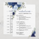 These beautiful cards are designed to let your guests know the schedule for your wedding celebration. The rustic boho chic design includes hand painted watercolor roses, eucalyptus leaves, and garden greenery in shades of royal, dusty, and navy blue. The front has a list of events for the entire weekend, and the back has a detailed timeline for the wedding day itself. Great addition to a wedding welcome bag, and a wonderful way to thank your guests for celebrating with you!