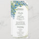 Blueberry avec Faux Gold Foil Frame Rustic Wedding Programme. Le style romantique avec bleuets et fleurs sauvages bleus est parfait pour un mariage d'été rustique. Le cadre géométrique en fausse feuille d'or apporte une touche moderne. L'aquarelle complète la composition et lui confère un charme particulier.