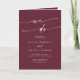 Ce programme de mariage boho chic rouge bordeaux que nous faisons plié est parfait pour une cérémonie de mariage minimaliste. Le vin de marron foncé rouge design bohème moderne dispose de calligraphie rustique simple avec un style unique mais classique. Personnalisez votre programme de mariage avec vos noms, date, lieu, devis préféré, ordre de service, mariage, message de remerciement et 3 photos.