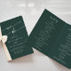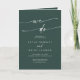 Ce boho chic vert émeraude que nous faisons plié programme de mariage est parfait pour une cérémonie de mariage minimaliste. Le design bohème moderne et moderne de la forêt de chasseurs, sombre et maussade, se compose d'une calligraphie rustique simple au style unique mais classique. Personnalisez votre programme de mariage avec vos noms, date, lieu, devis préféré, ordre de service, mariage, message de remerciement et 3 photos.
