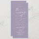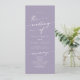 Ce programme de mariage chic à la lavande violette est parfait pour une cérémonie mariage minimaliste. Le design bohème moderne et coloré et pourpre présente une calligraphie rustique simple au style unique mais classique. Personnalisez votre programme de mariage avec vos noms, la date du mariage, l'emplacement, l'ordre de service, la fête de mariage et optionnel en mémoire d'amour.