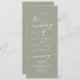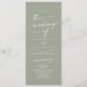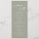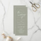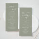 Ce programme de mariage à la sauge verte chic boho est parfait pour une cérémonie minimaliste de mariage. La tonalité neutre en terre verte design bohème moderne se caractérise par une calligraphie rustique simple au style unique mais classique. Personnalisez votre programme de mariage avec vos noms, la date du mariage, l'emplacement, l'ordre de service, la fête de mariage et optionnel en mémoire d'amour.