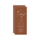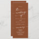 Ce programme de mariage chic en terre cuite boho est parfait pour une cérémonie mariage minimaliste. Le design moderne et bohème orangé terreux présente une calligraphie rustique simple, avec un style unique mais classique. Personnalisez votre programme de mariage avec vos noms, la date du mariage, l'emplacement, l'ordre de service, la fête de mariage et optionnel en mémoire d'amour.