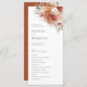 Boho Terracotta Dahlia Rose Floral Élégant Programme De Mariage Simple. Bouquet de style bohème invitation minimaliste avec fleurs brûlées orange et botaniques en aquarelle imprimée à la main. La couleur beige et terre cuite est magnifique pour les mariages boho dahlia et terre cuite. Modèle de programme pour les mariages du printemps, de l'été, de l'automne et de l'hiver.