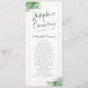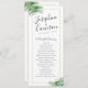 Des feuilles de palmiers verts à l'aspect réaliste entourent une bordure géométrique dorée sur un programme de mariage simple moderne et élégant de destination de plage tropicale avec une touche minimaliste. Cliquez sur "customiser plus loin" pour modifier les polices, ou arranger le texte et la conception sur le modèle comme vous le souhaitez.