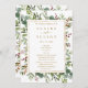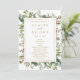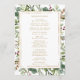 Ce programme de mariage comprend des eucalyptus peints à l'aquarelle, des feuilles verts, des baies rouges, des branches de pin et un cadre rectangulaire en faux or. Pour une personnalisation plus avancée de cette conception, cliquez sur le lien "Customiser plus loin". Des articles correspondants sont également disponibles.