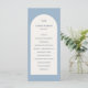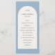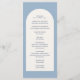 Programme de mariage moderne avec votre monogramme avec votre ordre de cérémonie et de mariage à l'intérieur d'une arche couleur ivoire sur un arrière - plan bleu poussiéreux. Ce design simple et élégant aux couleurs feutrées peut être parfait pour un mariage de printemps, d'été ou d'hiver.