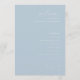 Ce programme de mariage présente un design minimaliste et élégant avec un fond bleu pastel doux, créant une atmosphère sereine et apaisante. La mise en page est centrée et alignée verticalement, mettant l'accent sur la clarté et la simplicité, tandis que la typographie combine des polices cursives et sans-serif pour ajouter de la sophistication et de la lisibilité. Parfait pour les couples recherchant une apparence contemporaine et formelle, ce modèle permet la personnalisation des noms, dates et lieux, ce qui le rend idéal pour personnaliser votre jour spécial. L'absence de motifs supplémentaires maintient l'attention sur le texte, assurant une esthétique propre et moderne qui transmet la tranquillité et la célébration.