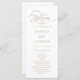 Ce programme de cérémonie mariage en or et blanc présente une calligraphie tourbillonnant élégante et romantique avec un script formel. Pour une personnalisation plus avancée de cette conception, cliquez sur le BOUTON OUTIL DESIGN BLEU ci-dessus !