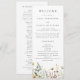 Cette conception présente une bordure à l'aquarelle de fleurs sauvages dans des tons d'or, de rouge, de bleu et de vert. Parfait pour les mariages de printemps et d'été.