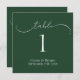 Un Mariage moderne Hunter Green Script signe Numéro de table pour créer un cadre moderne amusant pour un mariage classique. Personnalisez-le à l'avant et à l'arrière.