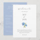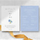 Chic et design. Élégant, mais simple. Ce programme de mariage comporte un message de bienvenue et des détails de programme entièrement modifiables dans un ensemble de polices contemporaines et d'illustration d'hydrangée. Le design est dressé contre un arrière - plan blanc éclatant à l'avant et un bleu poussiéreux à l'arrière. Très élégant et romantique avec des tons jeunes, ce design ajoute tout ce qu'il y a de spécial à votre grand jour. Personnalisez ce design unique pour en faire le vôtre.