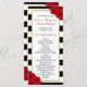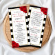 La collection chic moderne de luxe mariage de la collection dispose d'un arrière - plan classique rayé noir et blanc accentué par de belles roses rouges en rubis et un faux cadre en feuille d'or. Ces cartes de programme sont faciles à personnaliser et seront la commande parfaite de service pour tout mariage, douche nuptiale, fête d'anniversaire, fête de fiançailles ou toute autre occasion spéciale.