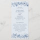 This elegant wedding program card features soft dusty blue botanical foliage arranged in a refined frame, paired with classic typography for a timeless and sophisticated presentation. Designed to display ceremony order, wedding party details, and meaningful moments, this card brings both beauty and clarity to your celebration. Inspired by vintage floral artwork and nature-influenced design, it is ideal for outdoor ceremonies, classic weddings, and luxury winter or garden celebrations, offering an elevated and cohesive stationery detail.