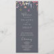 Ce programme classique de mariage floral bleu sauvage est parfait pour un mariage rustique. Le design présente des fleurs sauvages jaunes, violettes et blanches avec du feuillage dans un arrière - plan rose et vert aquarelle.