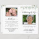Programme de mémorial funéraire de bon goût avec la photo de votre défunt amour, présentée par d'exquis détails de verdure aquarelle peints à la main devant, et l'intérieur (une fois plié). Sur le devant ci-dessous la photo défunte vous pouvez ajouter leur nom, la naissance et la date du décès, l'adresse et la date du lieu commémoratif. A l'intérieur à gauche, il y a une zone pour la nécrologie et à droite une zone pour la commande de service. Au fond, il y a l'occasion d'ajouter une deuxième photo, un message de remerciement et des instructions pour les instructions après les funérailles. REMARQUE : le programme est livré dans une feuille de papier de qualité plate qui devra être pliée une fois que vous les avez reçues. Coordination de la carte d'invitation à la fête de la vie, livre d'or, panneau de photos de bienvenue et notes de remerciement également disponibles. Une partie de notre "Delicate Funeral, Memorial Collection".