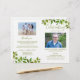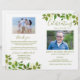 Programme funéraire budgétaire mettant en vedette sur le devant une photo de votre être aimé, son nom, ses dates, le lieu commémoratif, la date de l'événement et l'élégant feuillage vert d'aquarelle. A l'intérieur se trouve une nécrologie et un ordre de service ; et au dos une autre photo, une note de remerciement et le deuxième lieu pour après les funérailles. REMARQUE : Ceux-ci viennent comme un morceau plat de papier de qualité, vous aurez besoin de les plier vous-même.