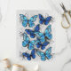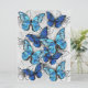 Vertical composition of réalistes, blue and white morpho butterflies on gray textured background. Morphine bleu.