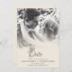 Couple mariage embrassant en carte Mariage monochrome sur lequel l'image, l'occasion, les noms, l'emplacement et la date peuvent être customisés dans le modèle.