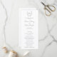 Programme de mariage traditionnel et classique noir et blanc avec un blason de mariage comportant votre monogramme à l'intérieur d'une couronne ainsi que vos noms en écriture / calligraphie. Ces programmes de mariage simples mais élégants sont parfaits pour un mariage formel.