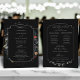 Ce design de programme chic présente une vie morte florale hollandaise du 18ème siècle, y compris des tulipes blanches, rouges et dorées et des fleurs sauvages sur un arrière - plan noir avec un étiquette central personnalisé, des graphiques floraux complémentaires et une calligraphie personnalisée fluide et élégante.