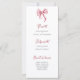 Programme de célébration de l'arc rose mignon quinceañera. La carte a un arc rose en haut et toutes les informations pertinentes en avant et en arrière de la carte. Illustré et dessiné par Patricia Alvarez.