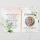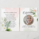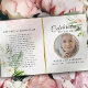 Customisez ce programme funéraire moderne et élégant avec votre propre photo et texte pour créer un hommage spécial à votre bien-aimé. Un programme "In Loving Memory" avec un programme botanique Floral Foliage et un programme de mémorial d'accent or. Sur la couverture, vous trouverez une photo de votre être aimé, son nom, ses dates, le lieu du mémorial et la date de l'événement. A l'intérieur est une nécrologie et une commande de service, et au fond est une note de remerciement et le lieu de l'Our store offre également d'autres modèles qui offrent une verdure botanique avec design rose et feuille et des accents de parties scintillant/or et le feuillage Eucalyptus pour répondre à toutes les exigences.