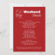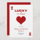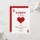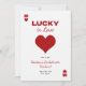 L'invitation d'itinéraire pour l'enterrement de vie de jeune fille « Lucky in Love » est un design moderne, minimaliste et funky qui dégage une atmosphère tendance de casino de Las Vegas pour la sortie ultime entre filles ; le devant ressemble à une carte de poker chic avec un cœur rouge gras en son centre, posé sur un fond blanc net avec une typographie rouge élégante, tandis que le dos se déplie sur une toile rouge vibrant avec des verres à vin dessinés à la main ornés de rubans coquets, où les détails du week-end sont affichés avec élégance - mélangeant parfaitement l'énergie amusante et branchée avec un clin d'œil ludique au frisson du casino.