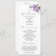 Élégant programme de mariage avec aquarelle illustration de pivoine violette avec verdure. Toutes les informations sur la cérémonie du mariage et le nom de la fête de mariage indiqué sur ce programme.