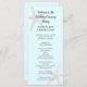Grand, double face, programme de mariage décontracté de la plage avec l'étoile de mer. Bleu pâle avec motif d'étoiles de mer gris imprimé sur de grandes cartes plates. Customisez facilement les deux côtés avec votre texte en script noir pour le titre et les polices imprimées pour le reste. Ajouter des espaces si nécessaire pour remplir le libellé.