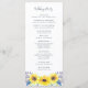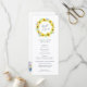 Notre programme de mariage chic de pays présente vos détails de cérémonie en lettres élégantes, avec vos noms encerclés par une couronne de tournesols couleur jaune, feuilles verts et de minuscules bourgeons bleu marine. Reverse side liste les membres de votre mariage avec des champs de texte facilement modifiables. Coordonné avec notre collection de faire-part de mariage Flowerfields pour les mariages d'été, de printemps, de plein air ou de jardin dans un cadre rustique. Utilisez les champs modèle pour ajouter les informations de cérémonie et de fête de mariage, puis cliquez sur "Personnaliser" pour repositionner les éléments si nécessaire.