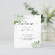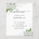 Arrière - plan blanc et élégant, décoré d'un blanc floral blanc aux couleurs de l'eau, de la végétation d'eucalyptus et de la poussière de parties scintillant faux argent. Personnalisez et ajoutez vos noms et votre calendrier de mariage.