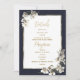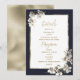 Cette superbe conception d'invitation de mariage présente de magnifiques invitations de programme de détails de mariage floraux tropicaux élégants en aquarelle blanche, bleu marine et or qui sont parfaits pour toute cérémonie élégante et sophistiquée. Cette fleur tropicale élégante est parfaite pour le couple luxueux et stylé. Personnalisez ce design avec votre message et vos informations personnalisées. Tous les designs sont imprimés.