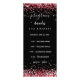 Programme de fête d'anniversaire et carte de menu. Personnalisez et ajoutez un nom, un âge, une date et le menu. Un arrière - plan noir. Décoré de confettis rouges, texte blanc.