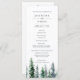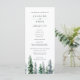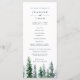 Notre programme de mariage au style rustique et hivernal chic présente les détails de votre cérémonie surmontés d'un seul pin aquarellé de couleur vert chasseur, entouré de neige. Le verso liste les membres de votre groupe de mariage avec des champs de texte facilement modifiables. Se coordonne avec notre collection de faire-part de mariage Timber Grove pour des mariages rustiques élégants dans un cadre boisé ou forestier. Utilisez les champs du modèle pour ajouter les informations sur votre cérémonie et votre cortège, puis cliquez sur "Personnaliser" pour repositionner les éléments si nécessaire.