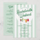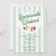 Un design coloré de cocktails à l'aquarelle dessinée à la main avec différents types de boissons alcoolisées. Un design magnifique parfait pour les fêtes d'enterrement de vie de jeune fille. Cette invitation à l'enterrement de vie de jeune fille comprend un programme de weekend au dos. Une invitation rétro moderne vintage verte et blanche rayée pour l'enterrement de vie de jeune fille.