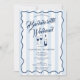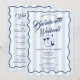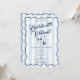 Un dessin coloré de bouteille de vin et de verres dessiné à la main. Un beau design parfait pour les fêtes de week-end de Bachelorette. Cette invitation de fête d'enterrement de vie de jeune fille comprend un itinéraire de week-end au dos. Une invitation de week-end de Bachelorette rétro moderne vintage bleue et blanche rayée.