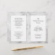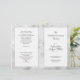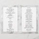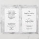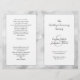 Programme de mariage de l'église avec un exemple de libellé pour une cérémonie de mariage catholique - ceci est un exemple seulement, et ne doit pas être le véritable ordre de la cérémonie. Remplir les modèles selon vos besoins. Des espaces peuvent être ajoutés pour remplir entre les lignes selon les besoins. Arrière - plan floral blanc avec panneaux blancs pour le libellé dans quatre zones modèles. Lorsque le papier est plié par l'acheteur, il devient un programme plié avec l'écriture sur quatre pages - avant et arrière et côté - chaque feuille de papier est un programme. Le thème neutre est parfait pour une cérémonie de mariage chrétien blanc.